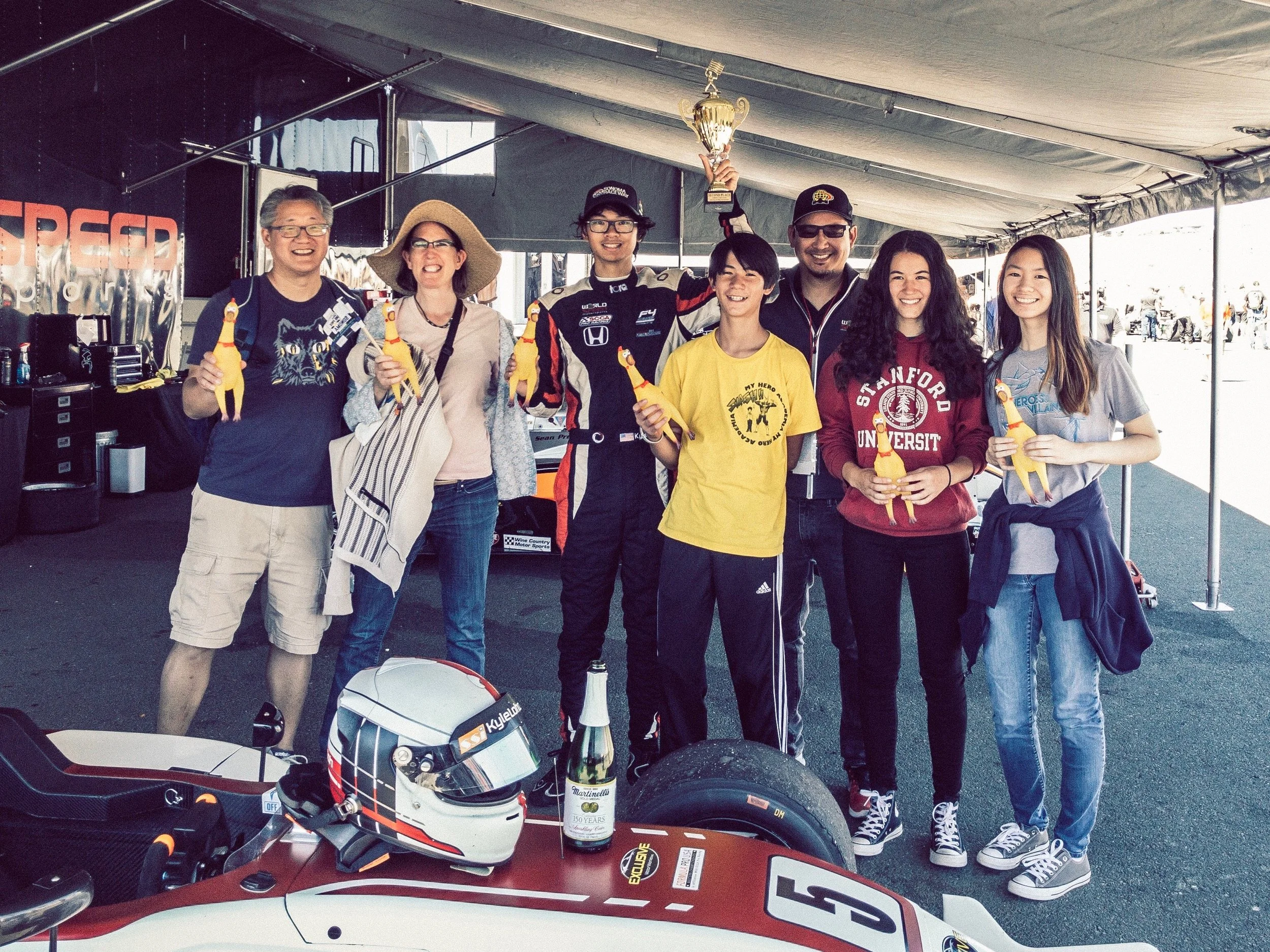 It was a fitting end to a hard-fought season. Kyle started his rookie season in cars a little behind the pace of the top drivers in the Formula Pro USA Western Championship, but finished strong with back-to-back 2nd place results during the IndyCar finale at Sonoma Raceway. Those two results helped to secure a 2nd overall finish for the series behind points leader, Scott Huffaker. Throughout the 12-race series, Huffaker won in each of the 10 races he participated in, but it was Kyle who took home the winners trophy during rounds 7 and 8 at Sonoma Raceway when Huffaker was absent, making him the only other driver to win during the inaugural season of Formula Pro USA.