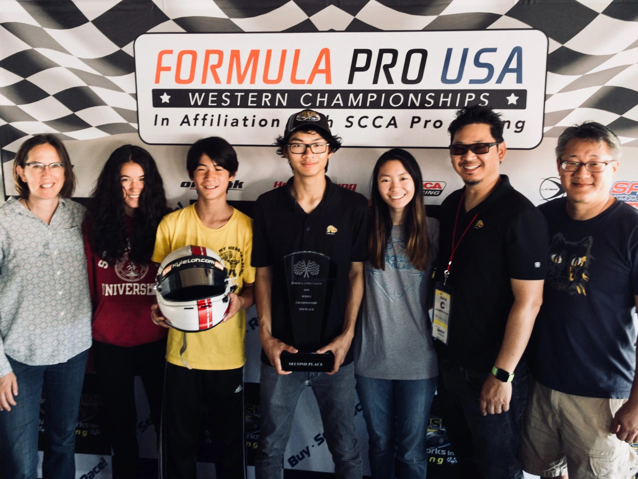 It’s been an incredible first season for Kyle in cars. The top-notch team at World Speed Motorsports did an amazing job in helping Kyle develop as a driver with each race. He could not have had the result he had without the help of Telo Stewart, Kevin Harrison and of course, his mechanic, Dan who supported him all season long. It was also wonderful to have family members there to witness this final race and cheer Kyle on as he earned his FPUSA series Vice Champion trophy. Congratulations to Scott Huffaker and Calder McWhinney for their first and third place finishes on the season.